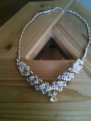 2018-01-08 おっと… マクラメジュエリー 茨城県水戸市でビーズ教室~あとりえ ぺるル~を主宰する組橋みどりです。 画像アップをしそこなっていた昨年度末からの作品です。 マクラメジュエリークリエイティブチームによるデザイン。 シェル結びと裏巻き結びと角四つだたみのネックレス 「ポレール」。巻きごたえのある作品です。 瞳硝子先生の「コツのコツ」もこの作品に 取り入れられています。なるほど~( ..)φメモメモ 結んでみてのお楽しみです。